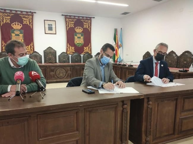 El Ayuntamiento de La Línea de la Concepción ha firmado esta mañana un convenio de colaboración con la Mancomunidad de Municipios del Campo de Gibraltar para articular la inversión en infraestructuras derivadas del ciclo integral del agua, que permitirá ejecutar mejoras en el saneamiento de la ciudad por importe de unos 9,5 millones de euros. Han participado el alcalde de la ciudad, Juan Franco, el presidente del ente comarcal, Juan Lozano, y su vicepresidente y consejero delegado de Arcgisa, Juan Macías.