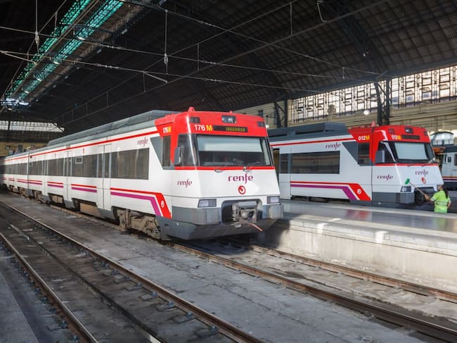 Dos trenes de Cercanías de Renfe, en la estación del norte de València. / Getty