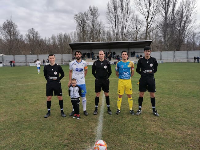 Foto de capitanes en el último partido del Almazán en La Arboleda. / SD Almazán, Cadena SER