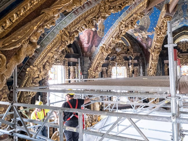 Posiblemente, hasta que se dé luz verde a la intervención pasen varios meses “tiempo que supondría mayor gasto mantener los andamios montados”. Además, de esta forma, se consigue durante este tiempo de espera que la zona del Altar Mayor del presbiterio vuelva a su aspecto habitual.