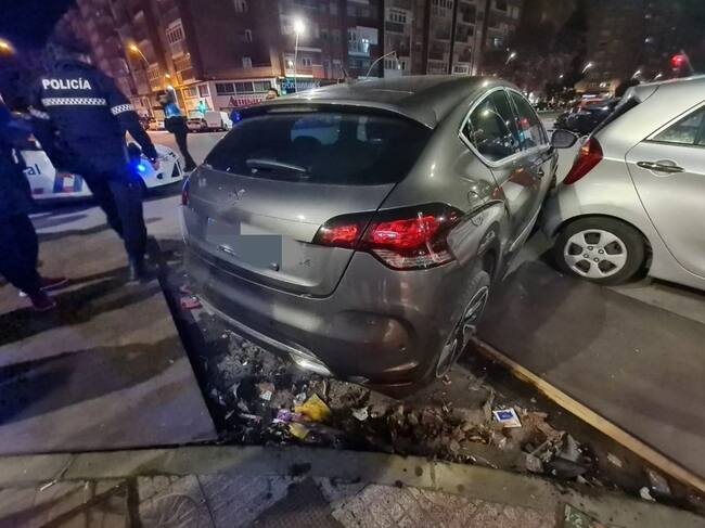 El conductor perdió el control del vehículo, chocó contra otro coche y desplazó una terraza de hostelería / Policía Local Burgos