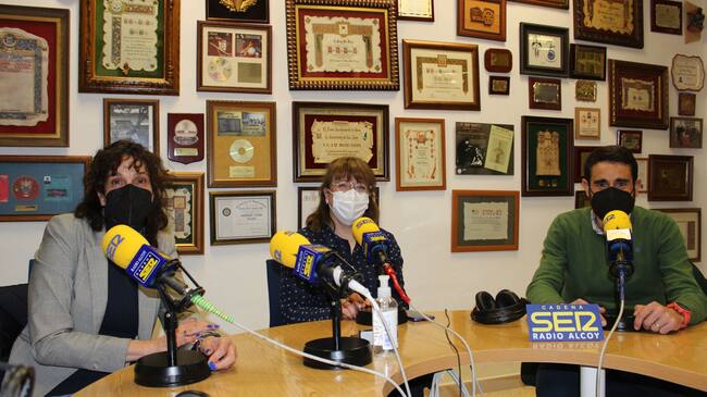 Paqui Ruiz, Ana Masanet y José Luis Molina, en el estudio de Radio Alcoy