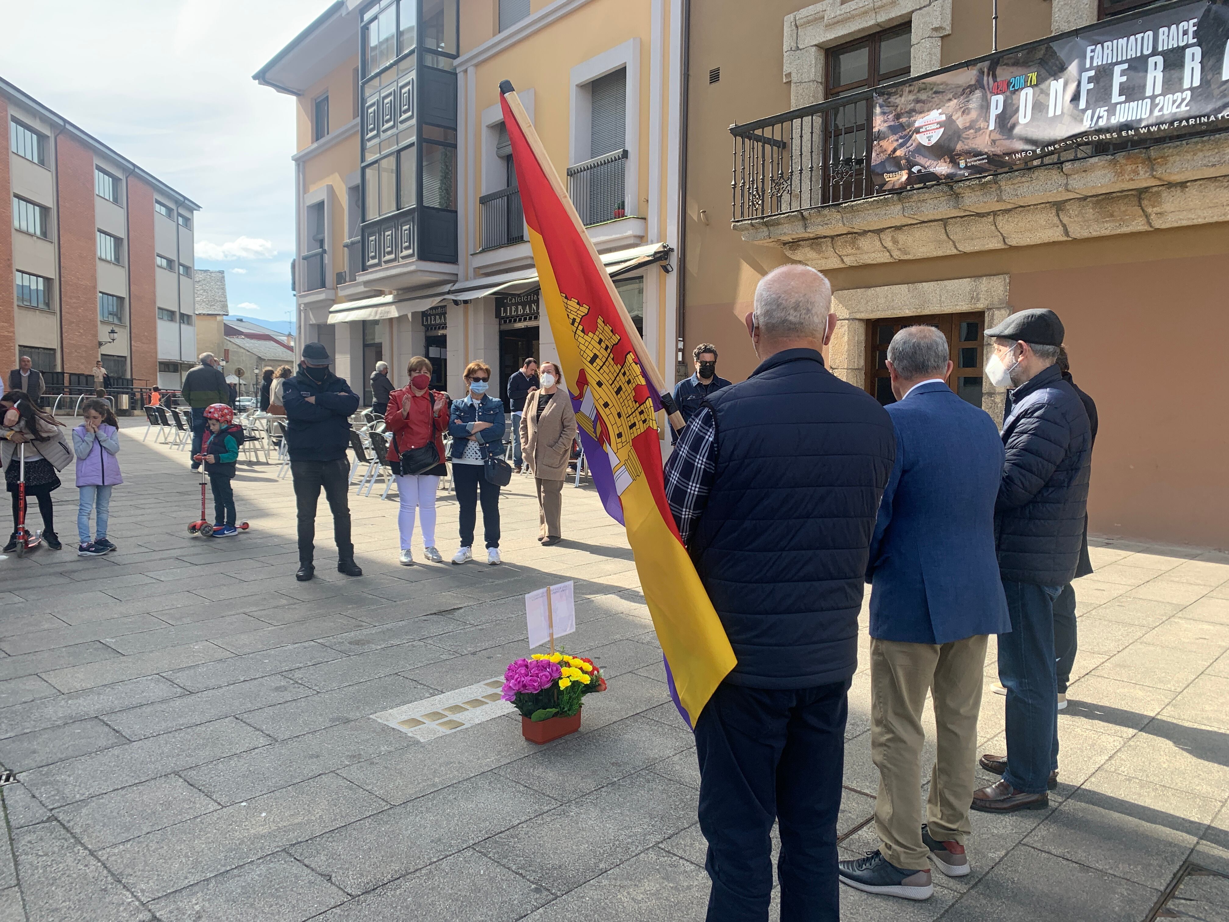Maria Antonia Abad es miembro de una saga de represaliados en el Bierzo y esta mañana ha participado en un humilde acto de homenaje que un grupo de familiares que han querido celebrar el aniversario de la proclamación de la Segunda República Española con un recuerdo a los suyos ante el monumento ‘Stolpersteine’, que perpetúa en la plaza del ayuntamiento de Ponferrada a las víctimas del holocausto nazi.