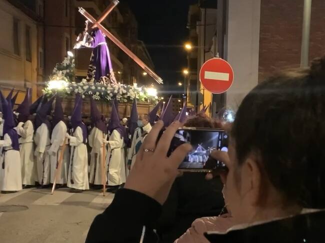 Las campanillas del viático, las castañuelas y el golpear de los hachones, son los únicos sonidos que rompieron el Silencio en una procesión multitudinaria y profundamente sentida que salió pasadas las diez y media de la noche de la iglesia de San Pedro y que regresó al templo después de más de una hora de recorrido entre la plaza del Cristo, la avenida de la Puebla, la plaza de Lazúrtegui, Gómez Núñez, avenida de Valdés y Camino de Santiago.
