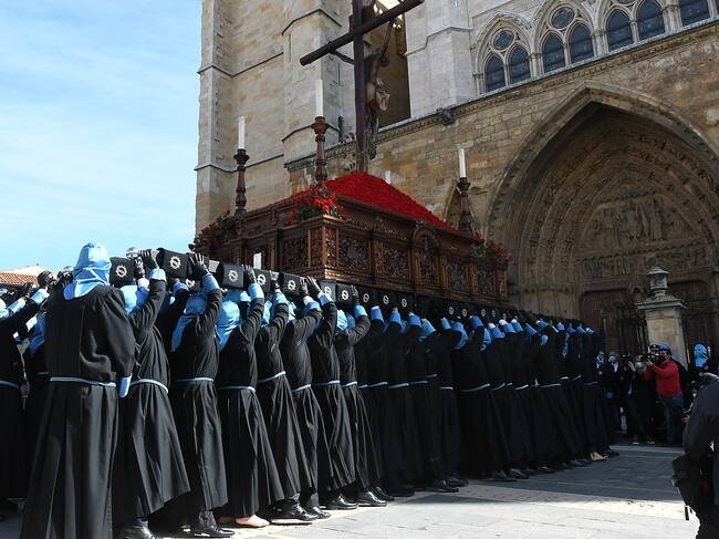 LEÓN, 14/04/22 Procesión de las Bienaventuranzas, este Jueves Santo en la plaza de la Catedral de León. EFE/J.Casares / J.CASARES (EFE)