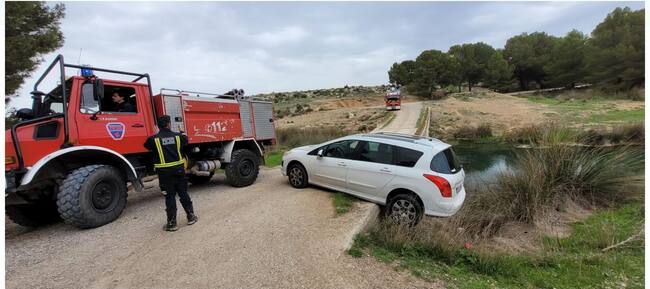 Una llamada al '1-1-2' Región de Murcia, sobre las 15.06 horas, informó de que un vehículo se ha quedado colgando en un desnivel de 2 metros en Yéchar-Fuente Caputa (Embalses y Fuentes), pedanía del municipio de Mula, mientras hacía maniobras.