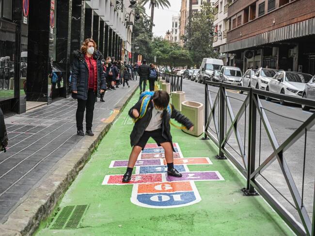 Zona de calzada que se ha ganado como espacio peatonal en el colegio Dominicos de València. / Ayuntamiento de València