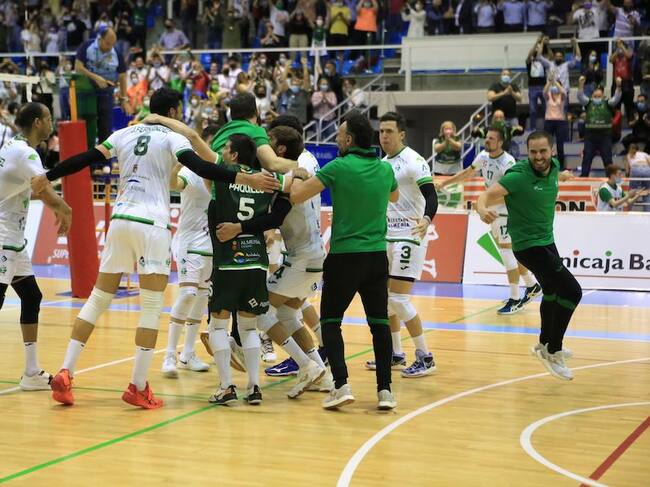 Juanmi González al saque, el público puesto en pie y remontada dentro de la remontada. El tie-break era el reto a lograr tras un 0-2 muy fácil para Guaguas, que no tuvo que remar duro para verse a un set de su segunda final seguida. Las llamadas de Manolo Berenguel y la conjura del equipo hicieron efecto y la cara del equipo fue la de las grandes ocasiones para, tras un 27-25 sufrido tras tenerlo controlado (de 20-16 a 22-23), volar en el cuarto set y llegar al desempate. Metidos en la tensión máxima, hubo un 9-11 que comenzó a recortar Kukartsev, quien metió al onubense al servicio y tuvo el relevo de Javier Jiménez en papel de ‘killer’ hasta el opuesto, entre el delirio general, y tenía que ser él, cerró con su punto 29 el pase a la final. Épica victoria ganando a los canarios y a si mismos.