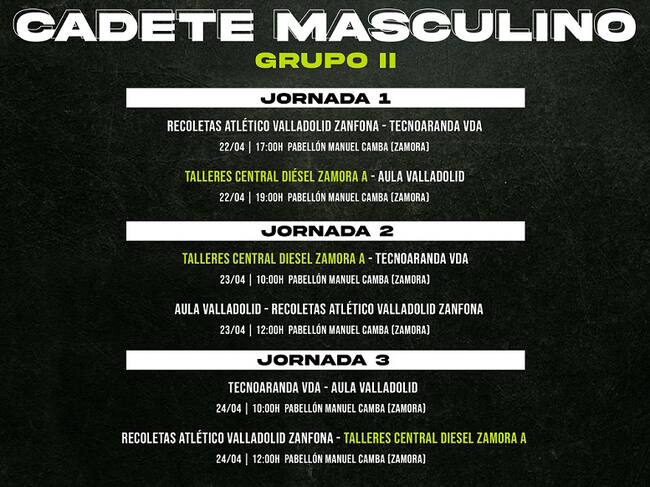 Calendario de la fase cadete