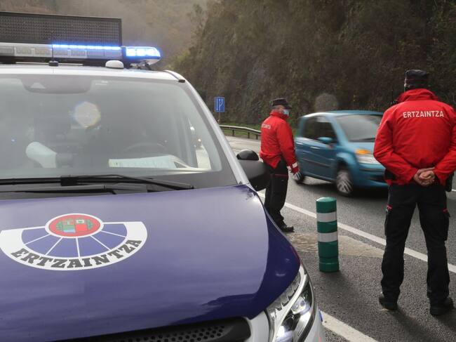 Dos ertzainas vigilan el tráfico, en una imagen de archivo