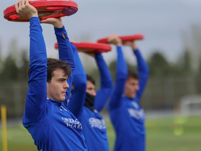 Francho, realizando un ejercicio de fuerza en la Ciudad Deportiva / Tino Gil-Real Zaragoza