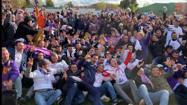 El conjunto morado con casi 1.500 alcarreños en las gradas del Municipal de Tarancón celebra el ascenso a Segunda RFEF y su primer titulo de campeón de liga en categoría nacional