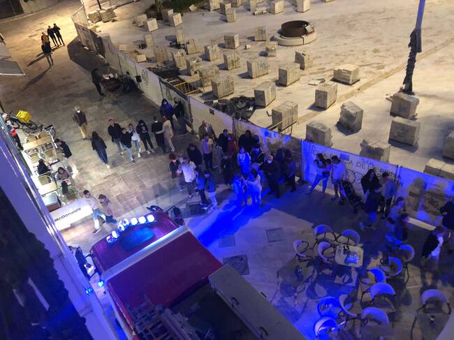 La emergencia se produjo al finalizar la procesión de San Vicente y previamente se tuvieron que retirar todas las terrazas de mesas y sillas de las cafeterías de la acera de la plaza de la Reina para que pudieran pasar los vehículos de Bomberos.