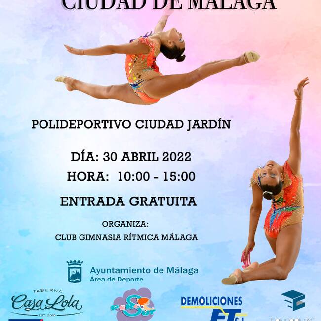 El XVII torneo nacional de gimnasia rítmica Ciudad de Málaga se celebrará este sábado en el pabellón de Ciudad Jardín y reunirá a unas 154 gimnastas federadas de las categorías prebenjamín, benjamín, infantil, cadete, alevín, juvenil, junior y senior.