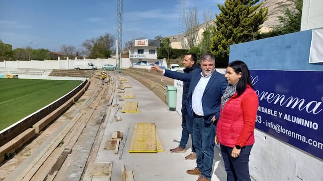 El alcalde ha explicado que la actuación en el campo de fútbol consta de dos fases, una primera que asegura la estabilidad de la zona de asientos, pasillos y escaleras de acceso; y una segunda, que consistirá en la instalación 500 asientos en el conjunto del graderío, tanto norte como sur.