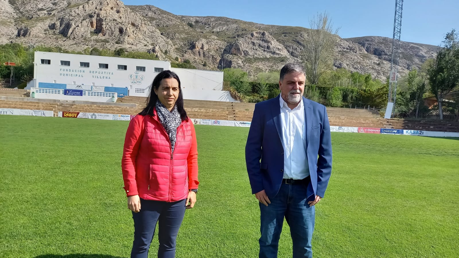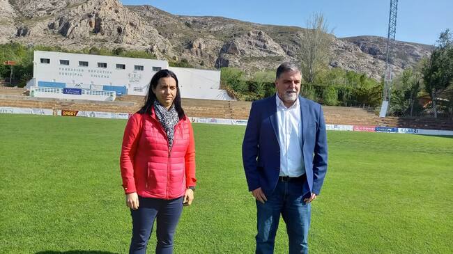 El alcalde de Villena, Fugencio Cerdán, y la edil de Deportes, Maite Gandía, han visitado hoy las obras de mejora de la Grada Norte del Campo Municipal de Fútbol La Solana, que cuenta con una inversión de 50.000 euros de la Diputación Provincial de Alicante. Además, han avanzado la próxima licitación del segundo pabellón deportivo, prevista para el mes de mayo.