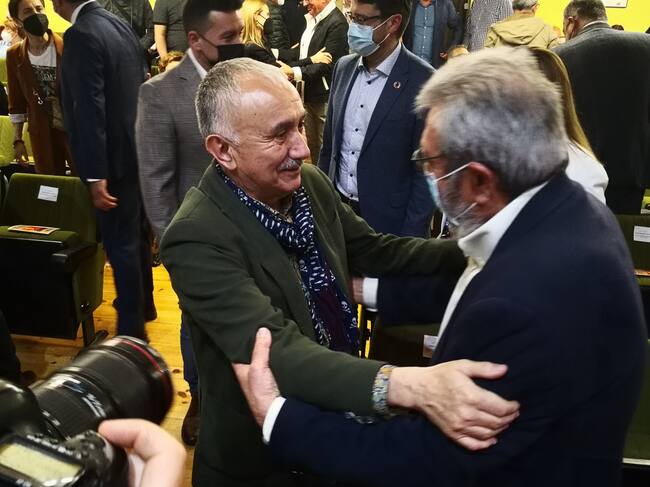 El secretario general de UGT, Pepe Álvarez, saluda a su antecesor en el sindicato. / Alejandra Martínez