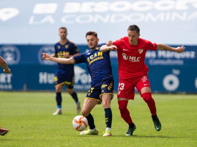Carracedo pelea un balón ante Xemi Fernández, jugador del UCAM Murcia. / Pascu Méndez