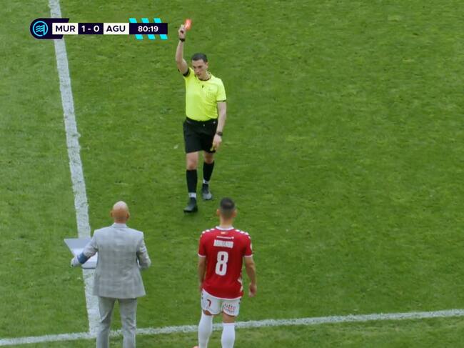 El árbitro del Real Murcia-Águilas expulsa a Pereñíguez Pérez en el momento del partido emitido por Footters / Footters