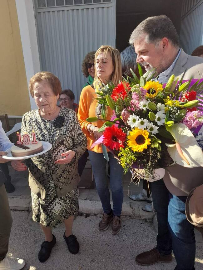 Virtudes Espinosa Tomás, vecina de Villena celebró este pasado jueves su 101 cumpleaños. Ya pasado el centenario, sus familiares, amigos y un gran número de vecinos del barrio se reunían para celebrar esta fecha tan especial