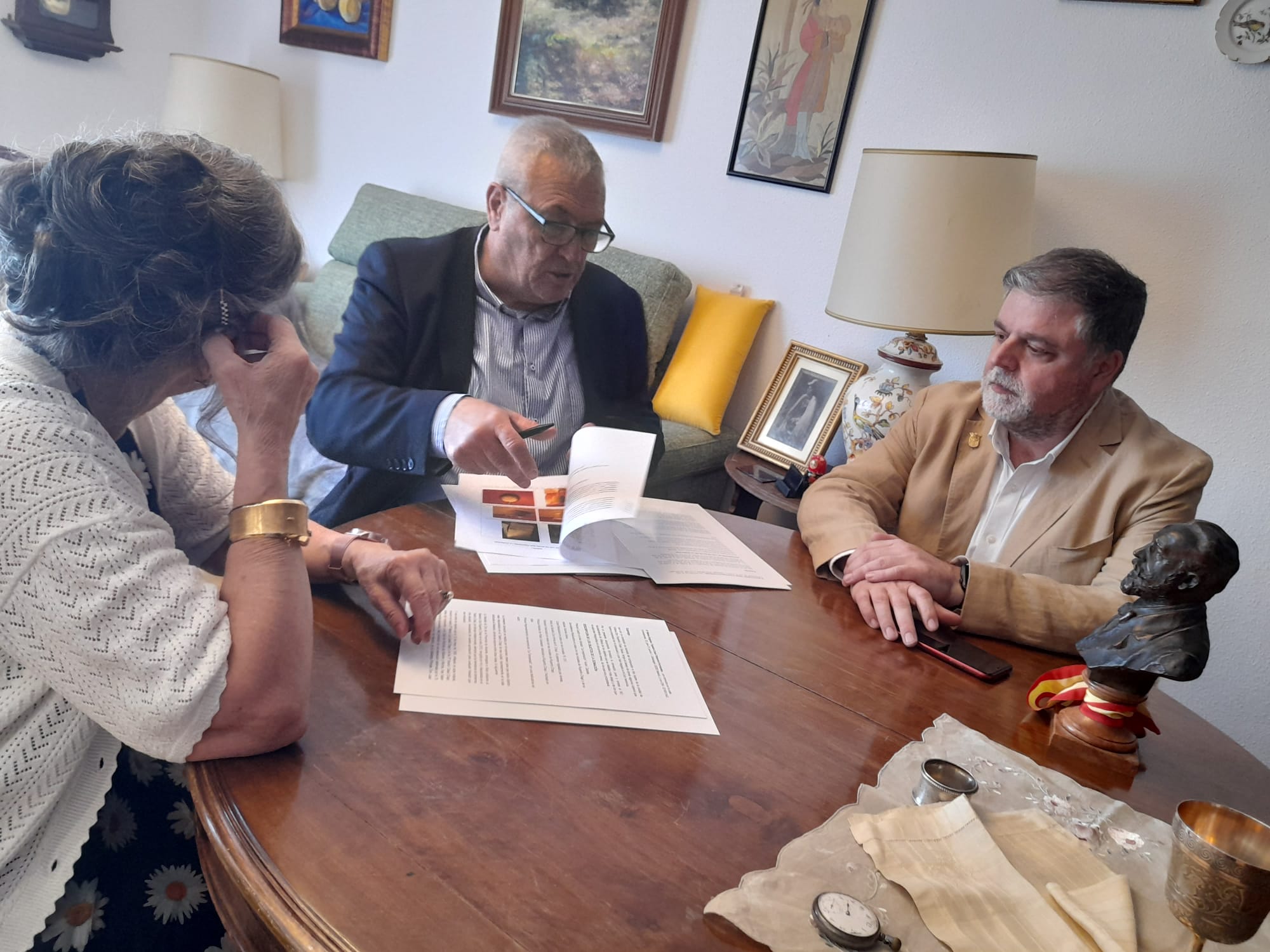 La delegación municipal formada por el alcalde de Villena, Fulgencio Cerdán; la edil de Cultura, Elena Benítez; y el director de la Casa de la Cultura, José Ayelo, han viajado hoy a Madrid donde se ha formalizado la cesión de objetivos personales del músico y compositor Ruperto Chapí a la exposición permanente que se encuentra en el Teatro de Villena. La biznieta de Chapí, María Ángeles Tejedor-Casal, ha formalizado el documento de cesión de los objetos que recibió en herencia.