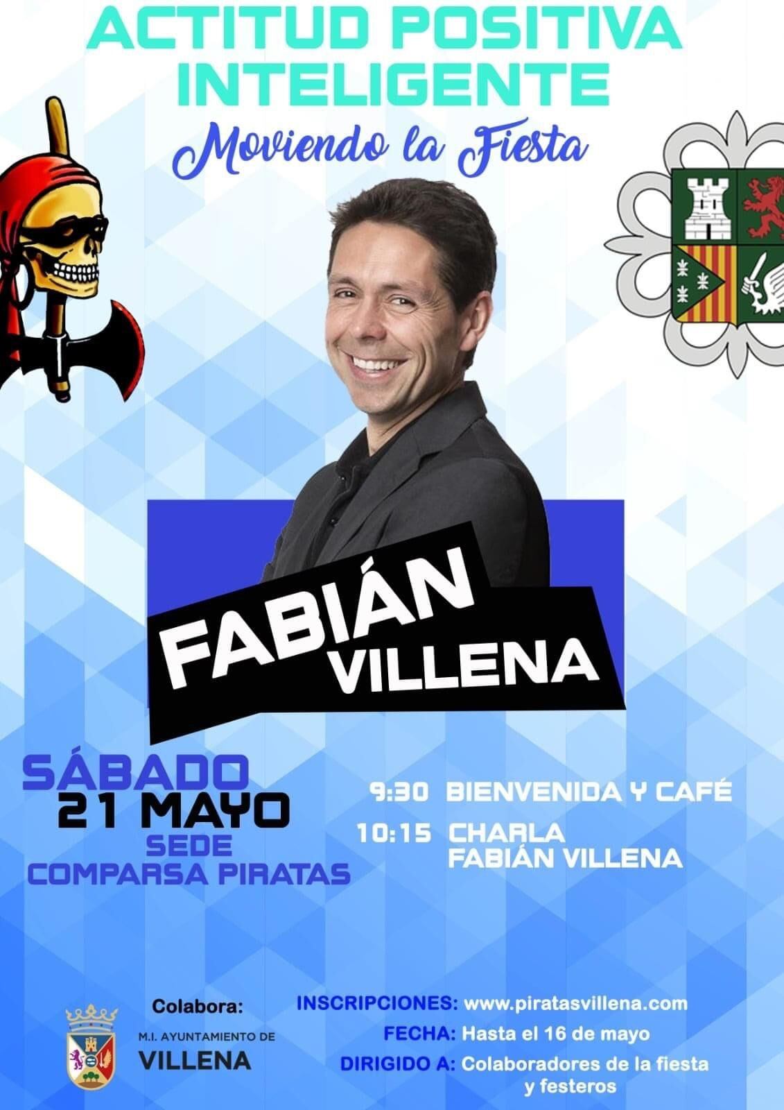 En el marco del movimiento “Moviendo la fiesta”, las Comparsas de Cristianos y Piratas han organizado para el sábado día 21 una charla sobre “actitud positiva inteligente” a cargo de Fabián Villena Guirao, consultor en felicidad y productividad. Será en jornada matinal a partir de las 9.30 de la mañana, contando con la colaboración del Ayuntamiento de Villena.