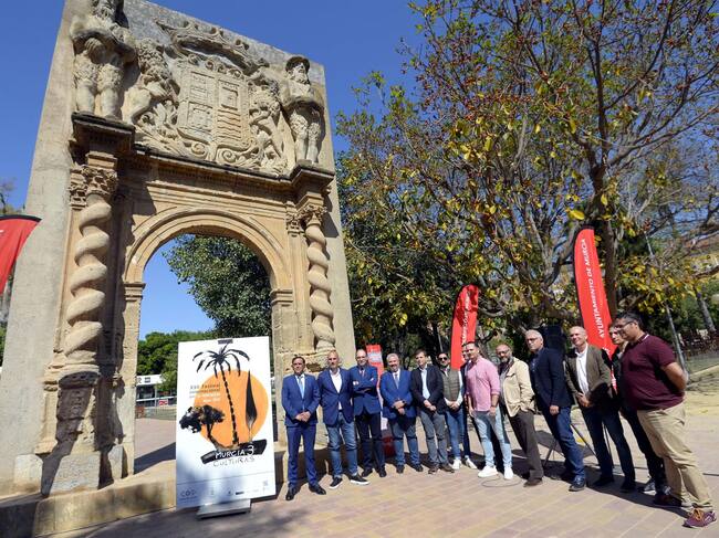 El alcalde de Murcia, José Antonio Serrano, acompañado del concejal de Cultura, Turismo y Deportes, Pedro García Rex, ha presentado este lunes esta cita cultural en la portada del Huerto de Las Bombas, en el Paseo del Malecón. Durante la presentación también se ha desvelado el cartel de este evento, elaborado por el artista plástico Ángel Haro.