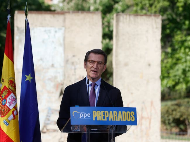 El líder del Partido Popular Alberto Núñez Feijóo participa este lunes en el acto organizado por el PP para conmemorar el Día de Europa / J.J.Guillén (EFE)