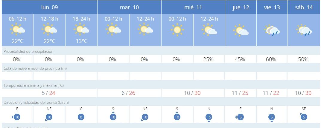 Estas son las temperaturas que prevé Aemet para los próximos días