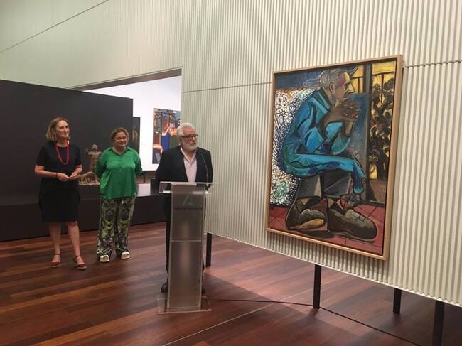 La obra ha sido donada a la pinacoteca por la Asociación de Amigos del Museo de Málaga, que adquirió el cuadro al pintor, y ha sido presentada este viernes oficialmente en sus dependencias por la secretaria general de Innovación Cultural y Museos de la Consejería de Cultura, Mar Sánchez; el propio autor; la directora del Museo, María Morente; y el presidente de la Asociación de Amigos, Rafael Martínez.