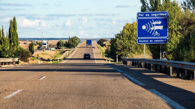 Un cartel azul anuncia un control de velocidad en una autovía española / @ Jose Antonio Bernat Bacete