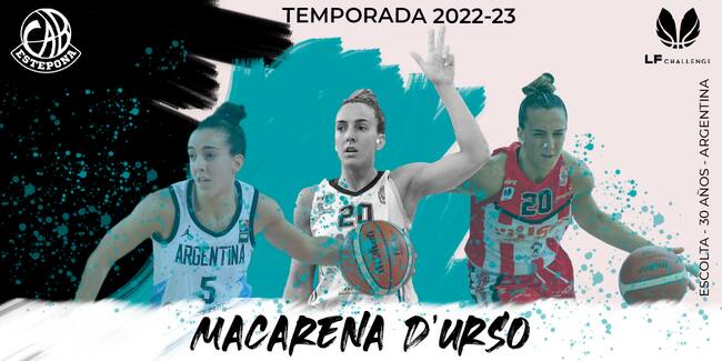 El CAB Estepona Jardín de la Costa del Sol ha anunciado la incorporación de Macarena D'Urso. La base-escolta nacida en Buenos Aires llegó a España de la mano del CB Almería y permaneció cuatro campañas. La argentina tiene una gran capacidad para liderar el equipo y construir las jugadas. Tiene 30 años y mide cerca de 1,70 metros.