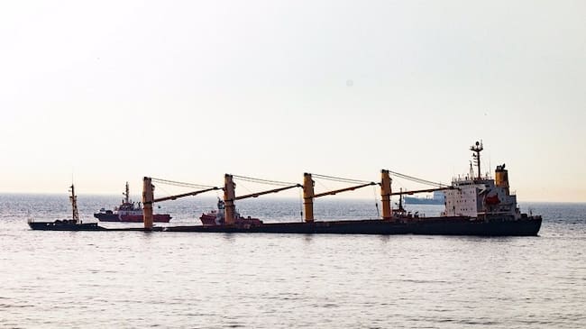 En el transcurso de la tarde, en cualquier caso, la Autoridad Portuaria de Gibraltar ha reaccionado "a una fuga de líquido hidráulico de la grúa de proa del buque", que es la única de las cuatro grúas a bordo del buque afectada por la entrada de agua hasta el momento, pues ha sido detectada una brecha en el casco de la nave.