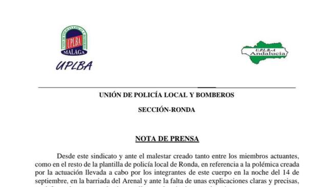 El escrito, al que ha tenido acceso Radio Coca SER Ronda, continúa alertando a aquellos ciudadanos que en las redes sociales están arremetiendo contra los agentes de la policía de que podrían ser sancionados ante la magnitud de algunas declaraciones donde se insulta o se emiten calumnias sobre los agentes actuantes. “Aquellas personas que están aprovechando la coyuntura para manchar el buen nombre de la policía local de Ronda y el trabajo que esta realiza, a través de redes sociales, con comentarios despectivos, que en algunos casos podrían tener la consideración de infracción administrativa según se recoge en la Ley Orgánica 4/2015, de 30 de marzo, de protección de seguridad ciudadana, por lo que se instará desde esta organización sindical a la Jefatura de la Policía Local para que se proceda en caso necesario, sin que esto quiera suponer ninguna limitación al malestar existente entre los afectados por dicha actuación y mucho menos al derecho de libertad de expresión que todos tenemos dentro del respeto”, concluye el comunicado que firma el representante sindical del UPLBA.