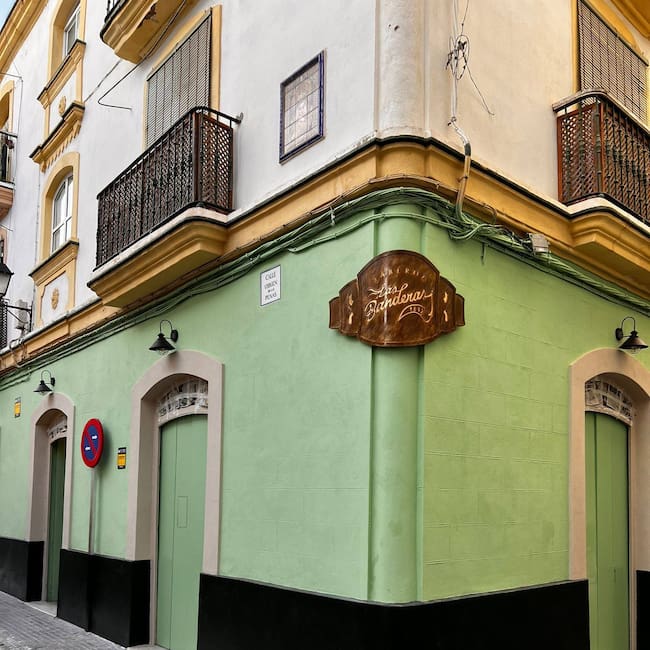 Cuatro amigos, entre los que hay gaditanos muy conocidos (Antonio Hernández-Rodicio y Fernando Pérez Cabrales) han decidido recuperar este templo de los buenos caldos, charlas y tertulias. Los empresarios han decidido mantener las señas de identidad claras del local, su color verde campiña en la fachada, su alta y larga barra, sus botas para los caldos de la tierra, los azulejos y solería de siempre…. con el ánimo de volver a tener el particular ambiente que caracterizaba a Las Banderas, su aspecto tradicional. Una taberna andaluza con amplia selección de vinos para ser escanciados, chacinas, latas, y guisos diarios que componen la base de la oferta gastronómica que se quiere ofertar.