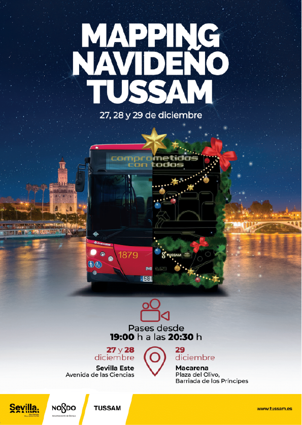 Uniéndose a la amplia programación navideña que ofrece la ciudad de Sevilla, TUSSAM proyectará un mapping sobre uno de los autobuses de su flota para ofrecer este espectáculo los días 27 y 28 de diciembre en Sevilla Este, Avenida de las Ciencias nº28, y el día 29 de diciembre en la Macarena, Plaza del Olivo en la Barriada de los Príncipes. En horario de 19 a 20:30 horas, con pases cada 15 minutos para que todos podamos disfrutar de este acontecimiento lleno de color, luces y música.