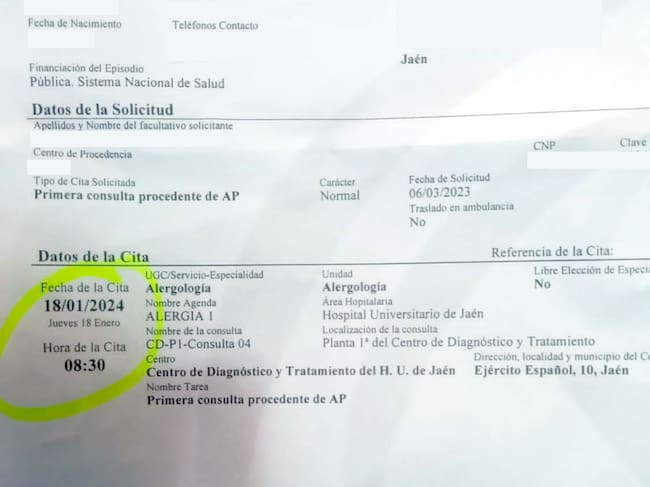 Citas a pacientes con alergia para 2024 en el Hospital de Jaén
