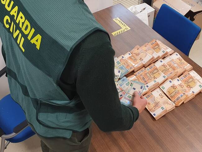 Dinero incautado en el robo con violencia ocurrido en Chilluévar. / Guardia Civil