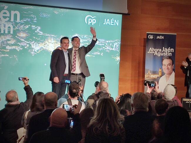 El candidato a la alcaldía de Jaén por el PP, Agustín González, junto al presidente popular andaluz, Juanma Moreno / Jose Gómez Garrido