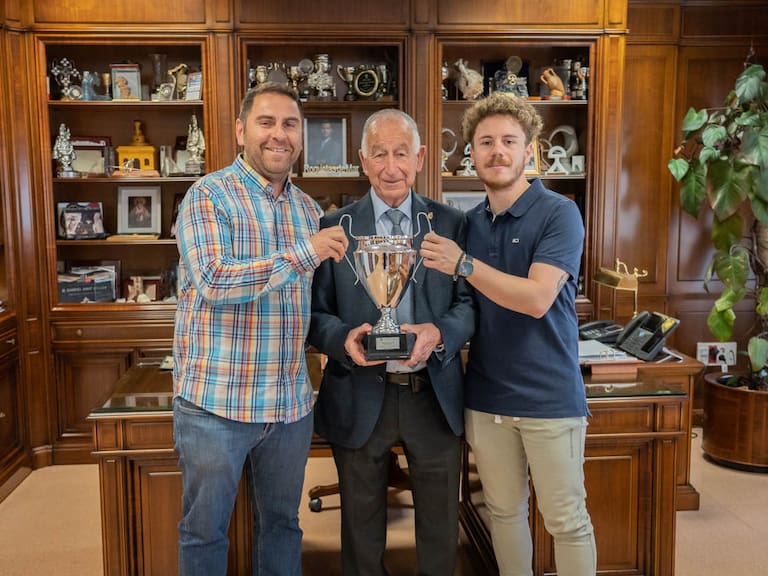 El coordinador del Club de voleibol Al-Bayana, José Antonio Fernández junto con el entrenador del equipo infantil masculino Regalos Cristian Al-Bayana, José Juan Gómez, han entregado al alcalde, Gabriel Amat, la copa con la que este equipo se ha proclamado subcampeón de Andalucía en esta categoría en el Campeonato regional celebrado en el Pabellón Infanta Cristina de Roquetas de Mar