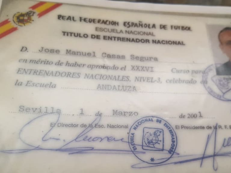 Llegó a fundar el Huércal “con Paco Pomedio", el Viator “con Paco el zapatero” y el Pechina “con mi primo Alejo”, recuerda como si el tiempo no hubiera pasado, como si el reloj se hubiera parado. “He tocado todos los palos en el fútbol”, dice, y muestra con orgullo su carné de entrenador nacional cuando lo saca de la cartera.