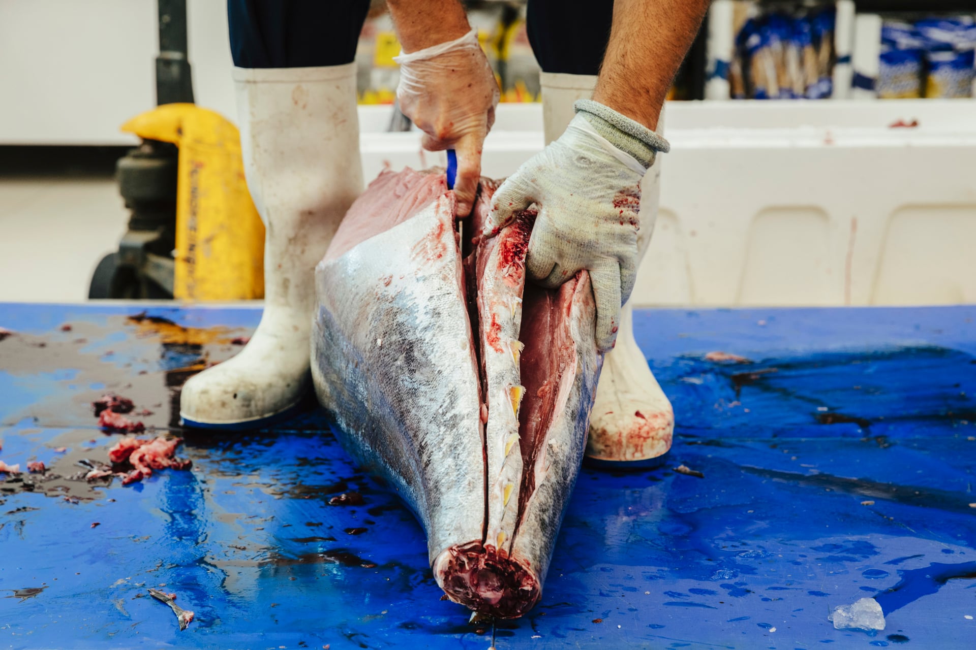 El ronqueo es una técnica tradicional de despiece del atún, donde los cortes se realizan de una manera única. Gracias a ello, se pueden extraer a la perfección las piezas del atún, empezando por la cabeza y la cola, para separar posteriormente las distintas partes como el morrillo, la ventresca, el lomo blanco, el lomo negro, la parpatana, etc, cortes muy apreciados en la gastronomía, que se extraen siguiendo un protocolo muy estricto y de la mano de profesionales en el producto.