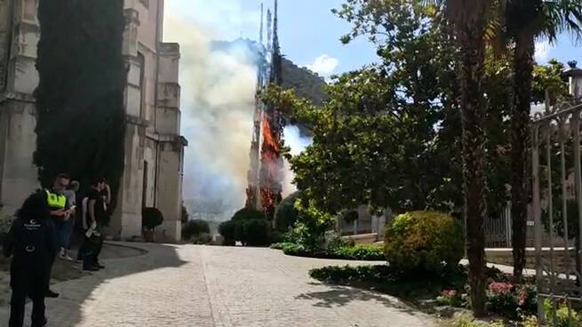 Unos pinos arden en el patio trasero de la Diputación Provincial de Jaén / Jose Gómez Garrido