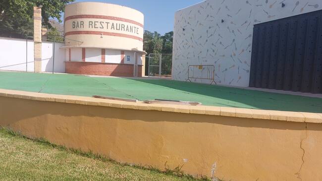 Terraza del restaurante de la piscina que no se pondrá en servicio esta temporada de baño / Antonio Plaza