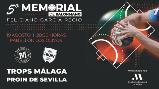 El Trops Málaga jugará su primer partido como local ante su afición esta pretemporada ante el Proin Sevilla de Primer Nacional en el torneo 5º Memorial de Balonmano Feliciano García Recio el sábado 19 de agosto. El encuentro tendrá lugar a las 20:00 horas en el pabellón Fray Francisco Baños del colegio Los Olivos, con entrada libre.