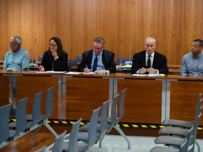 Manuel Alonso Herrero (i), expareja de Lucía Garrido, que fue hallada muerta flotando en la piscina de su finca de la localidad malagueña de Alhaurín de la Torre en 2008, para quien el fiscal encargado del juicio ha afirmado que el crimen fue por odio del exmarido hacia la víctima, como en cualquier caso de violencia de género, y que también tuvo un componente económico, sentado junto a sus abogados y otro acusado (d),EFE/Jorge Zapata / Jorge Zapata (EFE)