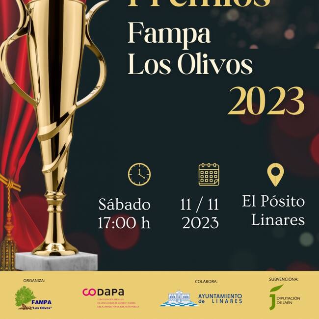 En esta 1° edición de los premios se quiere reconocer la labor desempeñada por las Ampas y el voluntariado que realizan, ejemplo y modelo para otras asociaciones. Para este aniversario FAMPA Los Olivos premia a Ampas señeras por ser ejemplos de acciones indicativas, de participación, y por trabajar la igualdad y la inclusión: Ampa Cazabito del CEIP Alfredo Cazabán de Jaén; AMPA Martín Valcárcel del CEIP Miguel de Cervantes • Lopera y el AMPA Picorzo del C.P.R. "Santa María de la Peña” • Orcera También con estos premios se reconoce a personas que han acompañado a la Federación durante estos años y que de forma altruista han contribuido a la formación, apoyo y asesoramiento, de las Ampas de las provincia de Jaén. Las personas reconocidas son Pedro Mármol Molina, Tole García Luque, Angustias Párraga Cámara, Matías Robles Maldonado y Nieves Ortega Fernández. En especial se ha querido hacer un premio póstumo honorífico a una persona muy comprometida con el movimiento de FAMPA Los Olivos y un gran profesional, Rafael López Sidro López. Por último, también se reconocerán a las grandes personas que han dirigido esta Federación desde su fundación hasta nuestros días. El Certamen cuenta con la colaboración de la Excma. Diputación Provincial de Jaén, el Excmo. Ayuntamiento de Linares, la Delegación Provincial de Desarrollo Educativo y Formación Profesional de Jaén y la Confederación Andaluza de Asociaciones de Madres y Padres del Alumnado por la Educación Pública (CODAPA).