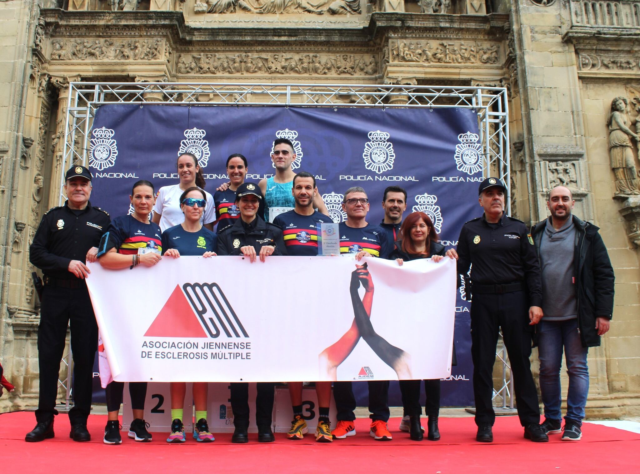 La plaza Vázquez de Molina de Úbeda se convertía ayer en el punto de partida de la carrera ‘Ruta 091 kilómetros solidarios’, organizada por la Comisaria Provincial de la Policía Nacional, cuya recaudación irá destinada en esta edición a la Asociación contra Esclerosis Múltiple ‘Virgen del Carmen’ (Ajdem).
