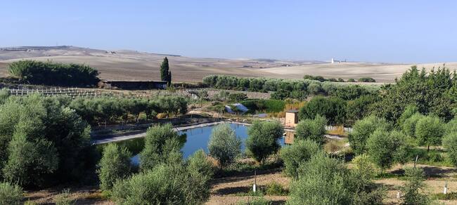 Junto a la geología, también la historia y los paisajes salen a nuestro encuentro en este paraje de las Peñas del Cuervo. Desde la cañada, mirando al sur, la ladera desciende hasta una vaguada por donde discurre el arroyo de Los Prados, cuyo valle pone en comunicación este antiguo fondo de marisma con los Llanos de Caulina. Frente a nosotros destaca en el horizonte el alto de Montegil, en cuya cumbre se instaló a comienzos del XIX una torre para el telégrafo óptico en comunicación con la situada en el paraje del Cornegil, entre Lebrija y El Cuervo y con la que se ubicó en la jerezana viña El Telégrafo, en el cerro de Capirete.