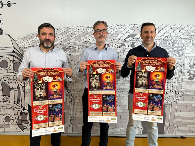 Ignacio A. Montoro, concejal de Cultura, acompañado de Sebastián Moreno y Santiago Calvo de Pópulo Servicios Turísticos, han sido los encargados de presentar la programación del X Festival de Teatro Familiar “Ciudad de Baeza” 2023, que se celebrará del 26 de diciembre al 4 de enero.